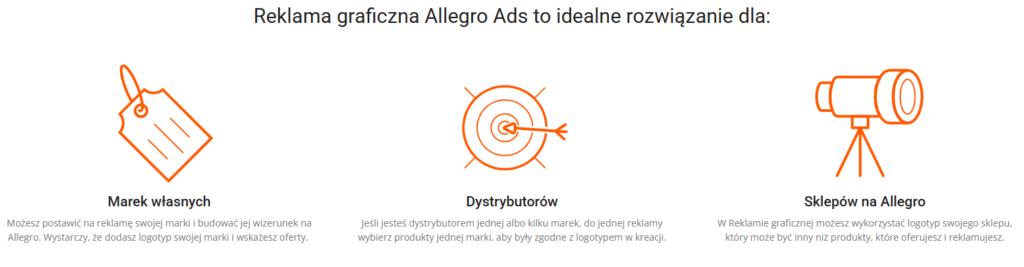 Jeśli zależy Ci na budowaniu świadomości marki i szerokim promowaniu marki, najlepszym wyborem będzie reklama graficzna. Wykorzystuje ona szeroką sieć reklamową Allegro, emitując banery na stronie głównej oraz na górze wyników wyszukiwania. Ta sieć reklamowa pozwala skutecznie zdominować wzrok klientów i odróżnić się od konkurencji.