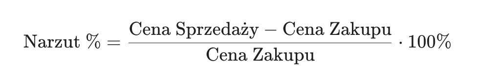 • Narzut wskazuje, o ile procent zwiększyliśmy koszt zakupu, aby otrzymać cenę sprzedaży.