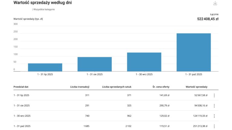 W sierpniu sprzedaż wynosiła 94 508,16 zł, natomiast po dwóch miesiącach współpracy – w październiku – osiągnęliśmy już 251 213,38 zł.