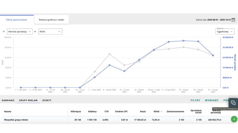 Dwumiesięczna współpraca pokazała, jak duże możliwości wzrostu kryją się w precyzyjnie zaplanowanej strukturze kampanii oraz odpowiednim podejściu do optymalizacji. Jasno określony cel ROAS, szybkie wdrożenie zmian w ofertach oraz logiczny podział kampanii pozwoliły nie tylko zwiększyć sprzedaż o ponad 160%, ale także zapewnić stabilną rentowność.