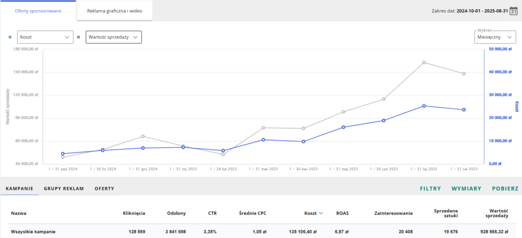 Współpraca z tym partnerem pokazała, jak ogromny wpływ na wyniki sprzedaży ma połączenie dobrze zaplanowanych działań reklamowych z aktywnym rozwojem konta. Dzięki regularnej optymalizacji kampanii, testom nowych rozwiązań i ścisłej współpracy udało się nie tylko zwiększyć efektywność budżetu, ale też zbudować trwałą przewagę konkurencyjną na Allegro.