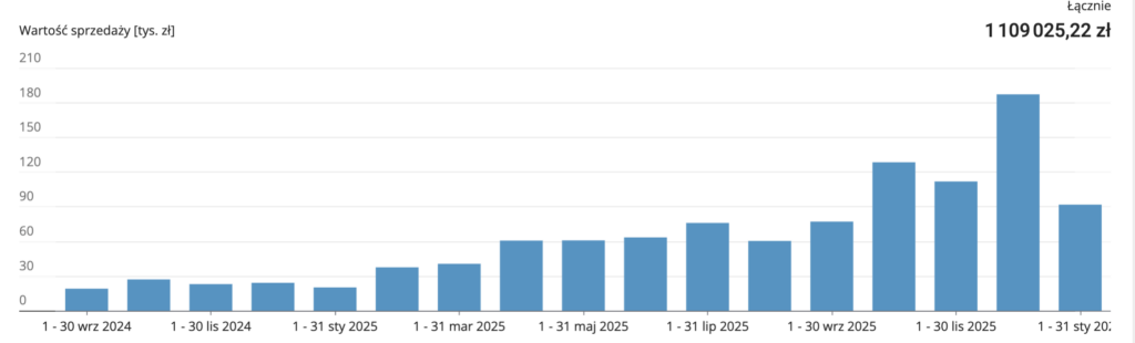 Rekordowy wynik (Grudzień 2026): Prawie 188 000 zł obrotu.