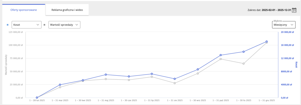 Kurczowe trzymanie się wysokiego ROAS przy niskim budżecie początkowym było hamulcem. Dopiero odważna decyzja o przesunięciu środków z pasywnych wyróżnień na aktywne, precyzyjnie kierowane kampanie Ads (z wykorzystaniem day-partingu) pozwoliła uwolnić prawdziwy potencjał asortymentu Partnera.